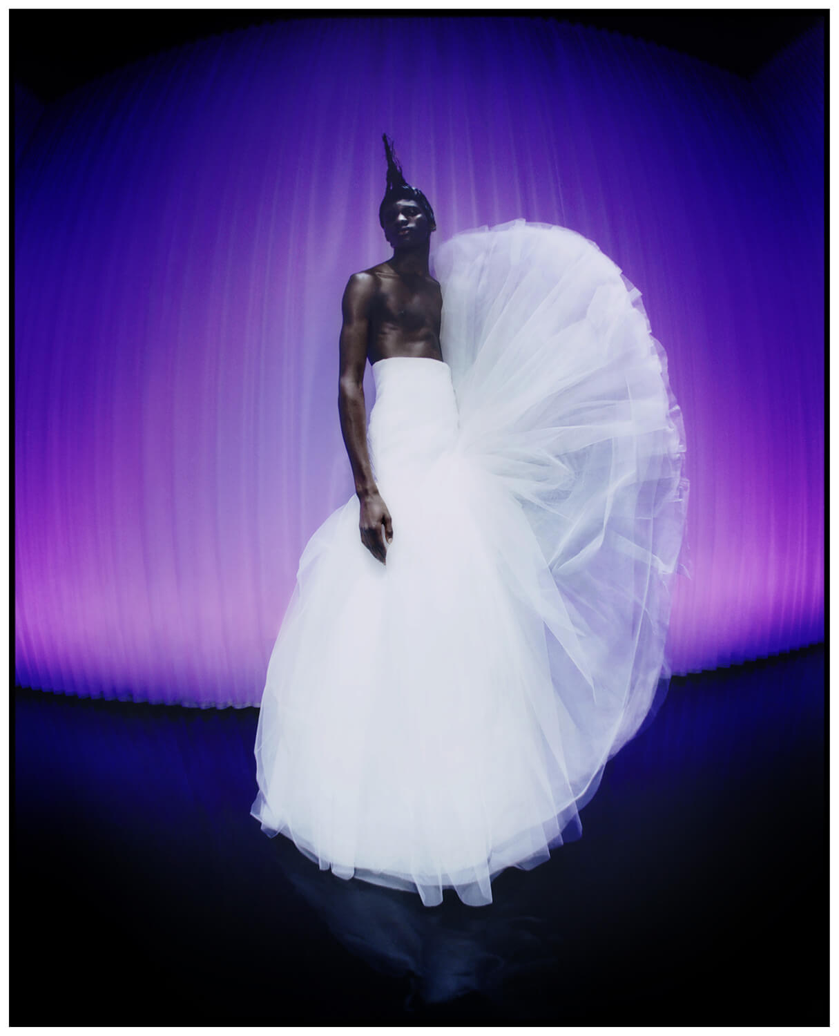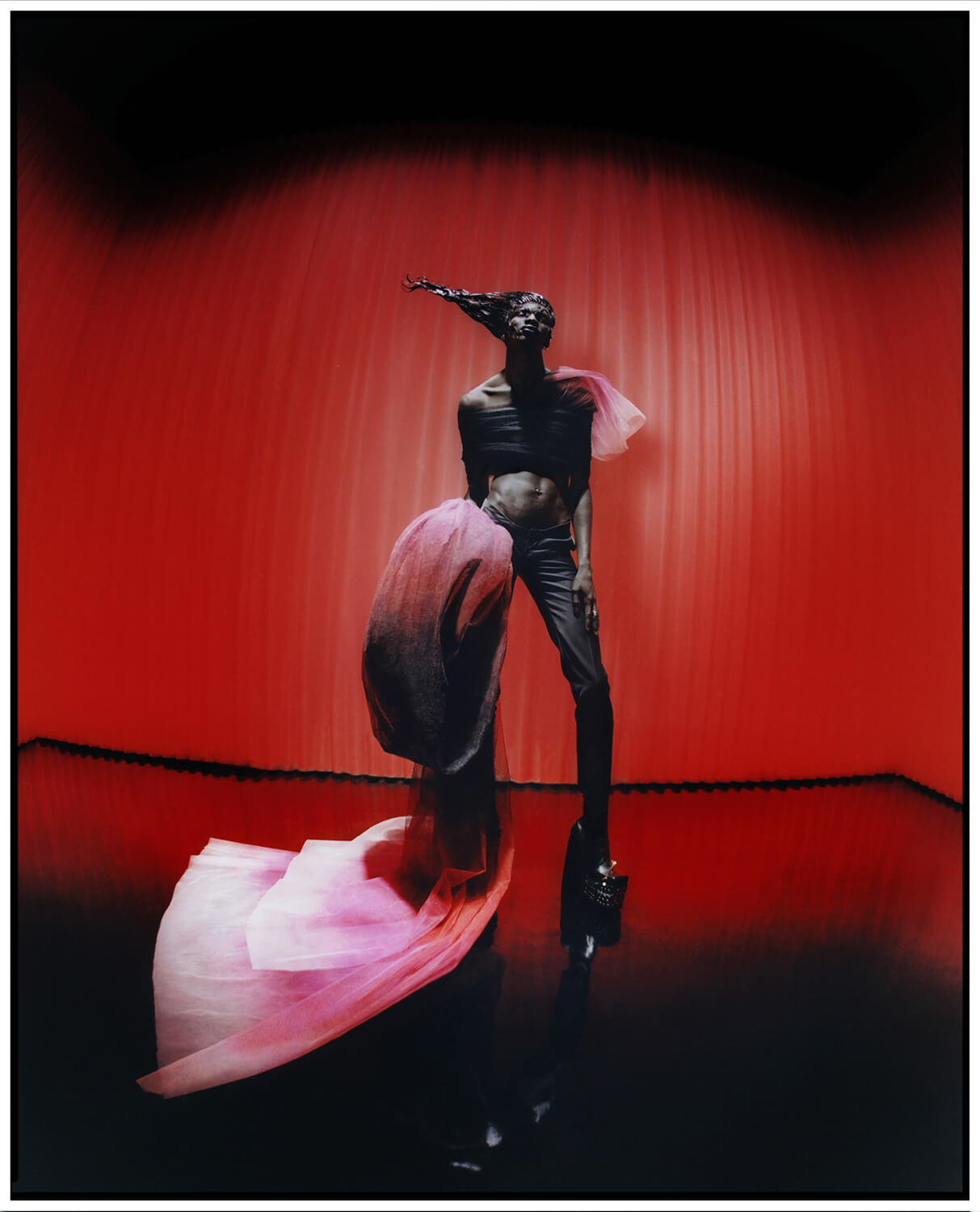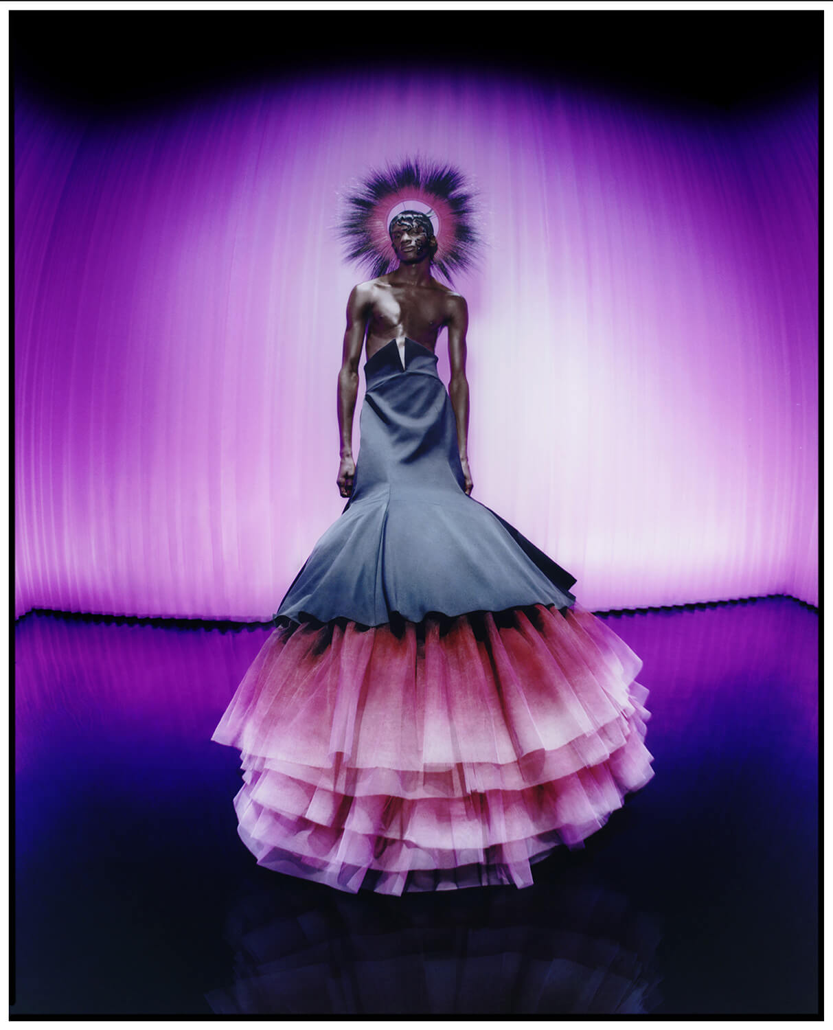 Beauty: Terry Barber @ David Artists for a M·A·C Sponsored production using M·A·C products and the NEW M·A·C X HARRIS REED Collection | Hair: Ali Pirzadeh @ JAQ Management using Got 2 Be | Styling: Harry Lambert @ Bryant | Photographer/ Director: Jenny Brough | Casting: Nachum Shonn | Movement: Pat Boguslawski @ STREETERS | Model: Momo @ SUPA | Music: Honey Dijon | Production: Family Film | Location: East End Studios | Footwear: Harris Reed X ROKER | Jewellery: Missoma | Millinery: Harris Reed in collaboration with Vivienne Lake | Design Consultant: Mollie-May Boyd | Design and Textile Consultant: Giorgia Presti | Tailoring: Beau Scarlett Pitt | Operations: Phoebe Briggs | Fashion Assistants: Imogen Brown, Enrico Pisano, Rebecca Bean, Stella Satie